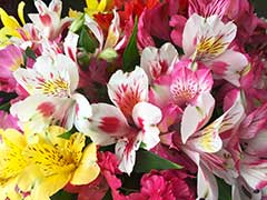 百合に似た形で、優美さと豪華さを兼ね備えた花「アルストロメリア」。赤・ピンク・白・黄色・紫色など、色のバリエーションが豊富で、とてもカラフル。家に飾る花としても、卒業・入学・就職などお祝いのギフト用や、式典を飾るステージ花としても人気です。