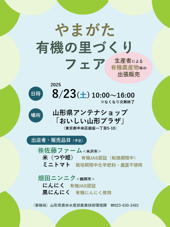 おいしい山形プラザで「やまがた有機の里づくりフェア」を開催します! |