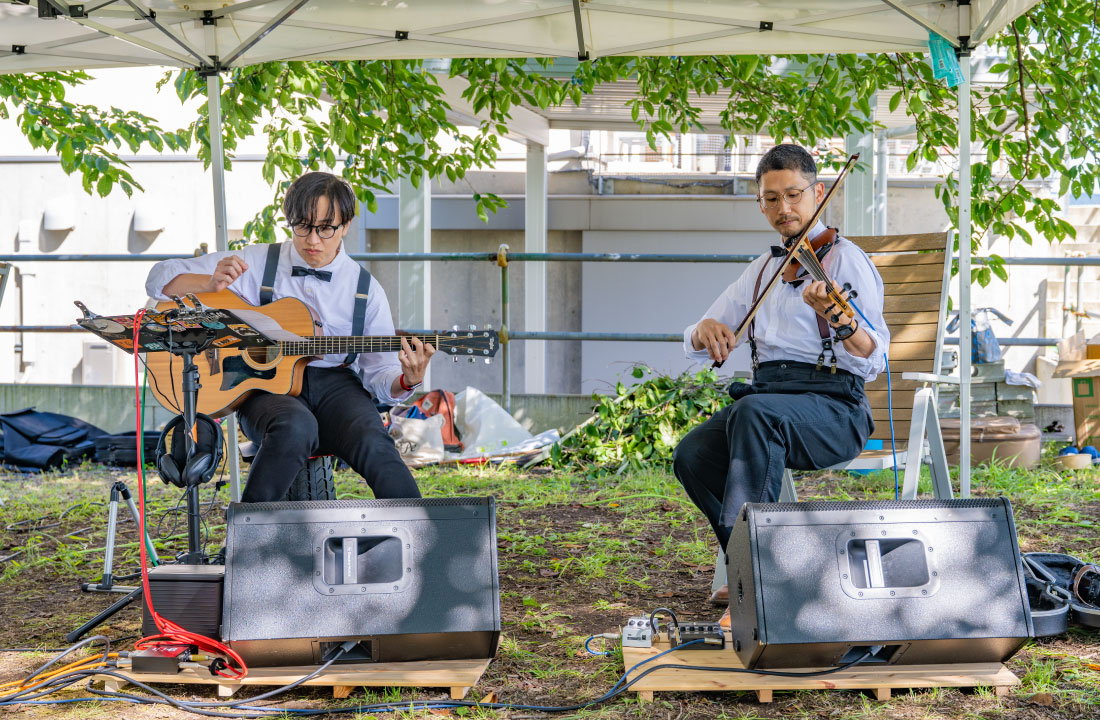 今回の夢婚が行われたのは、鶴岡市松ヶ岡にある「ピノ・コッリーナ ファームガーデン&ワイナリー」。木漏れ日が差し込む会場の背後には、月山とぶどう畑が広がり、秋晴れの空が優しく見守っていました。人前式は静かに始まり、親族や友人の視線の先にある、新郎の佐藤 一さん、新婦の奈月さん、そして愛娘の翠衣ちゃんが歩む姿は、映画の1コマのよう。庄内の風土に育まれたふたり、そしてぶどうが大好きな親子の想いが重なり合い、祝福の空気に包まれました。