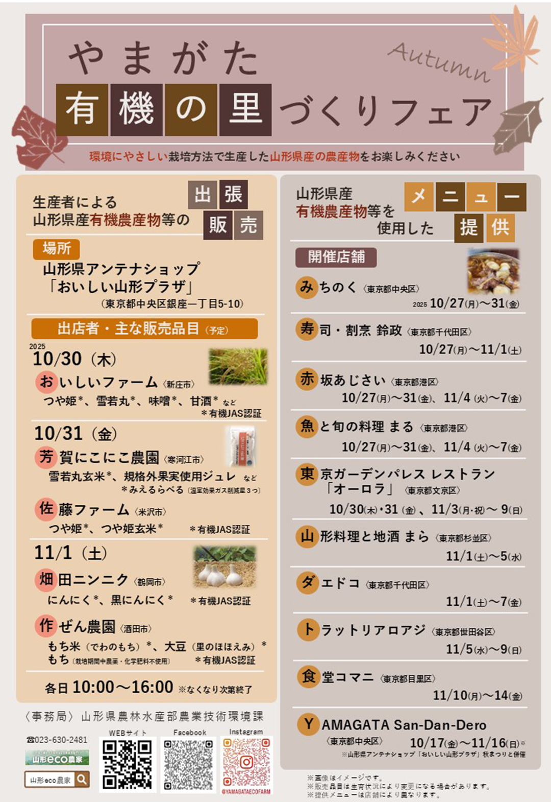 東京で「やまがた有機の里づくりフェア」を開催します! |