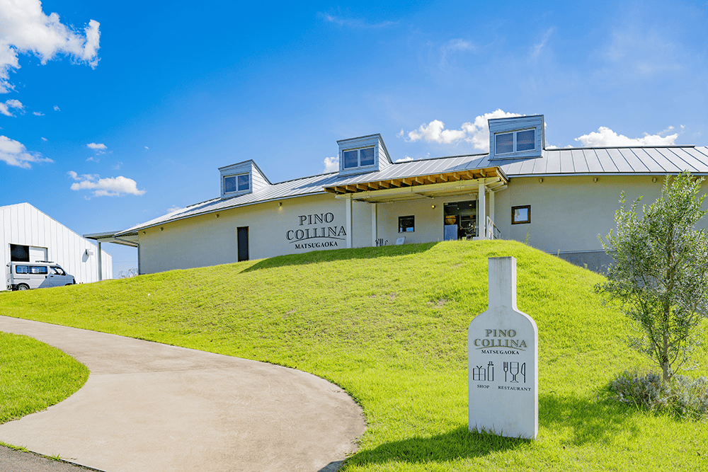 ピノ・コッリーナがある松ヶ岡は、庄内の歴史と風景が息づく特別な場所です。かつて庄内藩士たちが開墾し、シルク産業を興したこの地は、庄内柿や桃の畑として実りを支え、現在ではワイン用ぶどうの栽培も行われる、果実の歴史が重なる土地となりました。丘陵地に広がるぶどう畑は、イタリア・ピエモンテ州のランゲの丘を思わせる美しさから、ワイナリーのオーナーはここを選んだのだとか。ほかにもレストランやワイン醸造施設が併設されており、庄内の食と風景を五感で味わえる空間が広がっています。そしてこの場所では、結婚式も挙げられる─そんな奇跡のようなロケーションが、今回の夢婚をより特別なものにしてくれました。